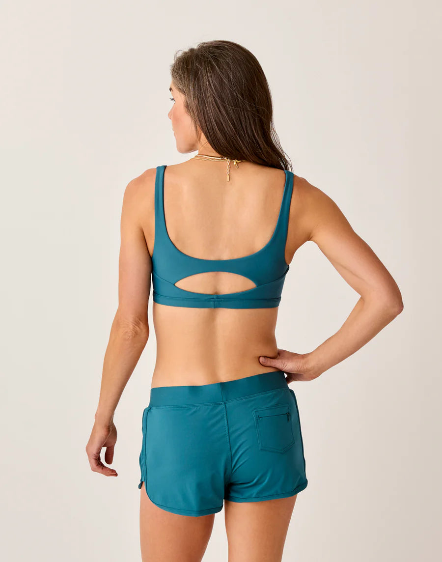 The perfect crossover short from water to sand. UPF 50+, built in brief, back zip stash pocket, and comfortable wide elastic band.