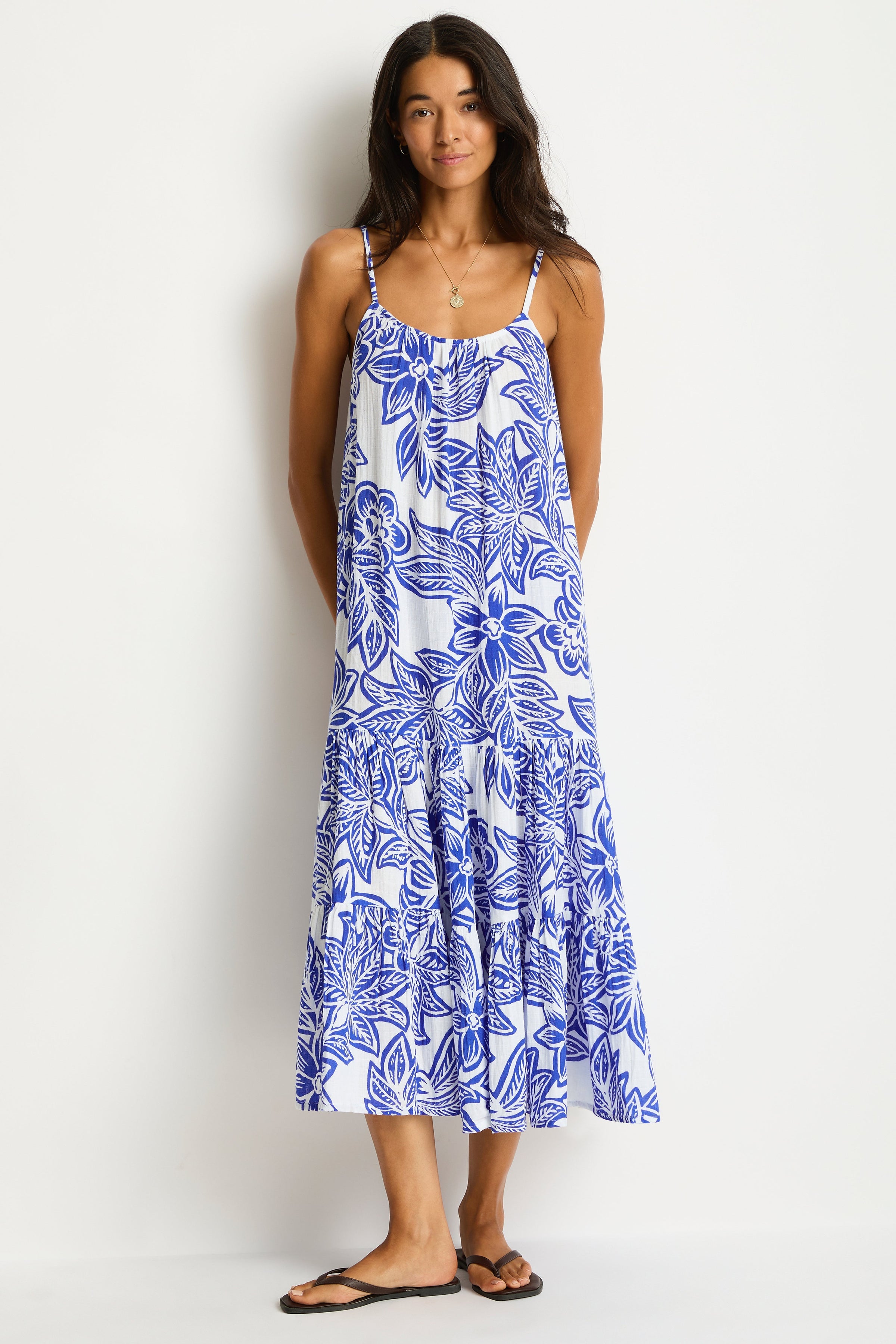 Step into effortless style with the Palmera Resort Tiered Midi Sundress. Made from soft, breathable 100% cotton cheesecloth fabric, this lightweight dress features adjustable back tie straps and a flattering midi length. Easy to pack and versatile, it layers beautifully over your favourite swimwear or stands out on its own, making it an essential piece for your next getaway.