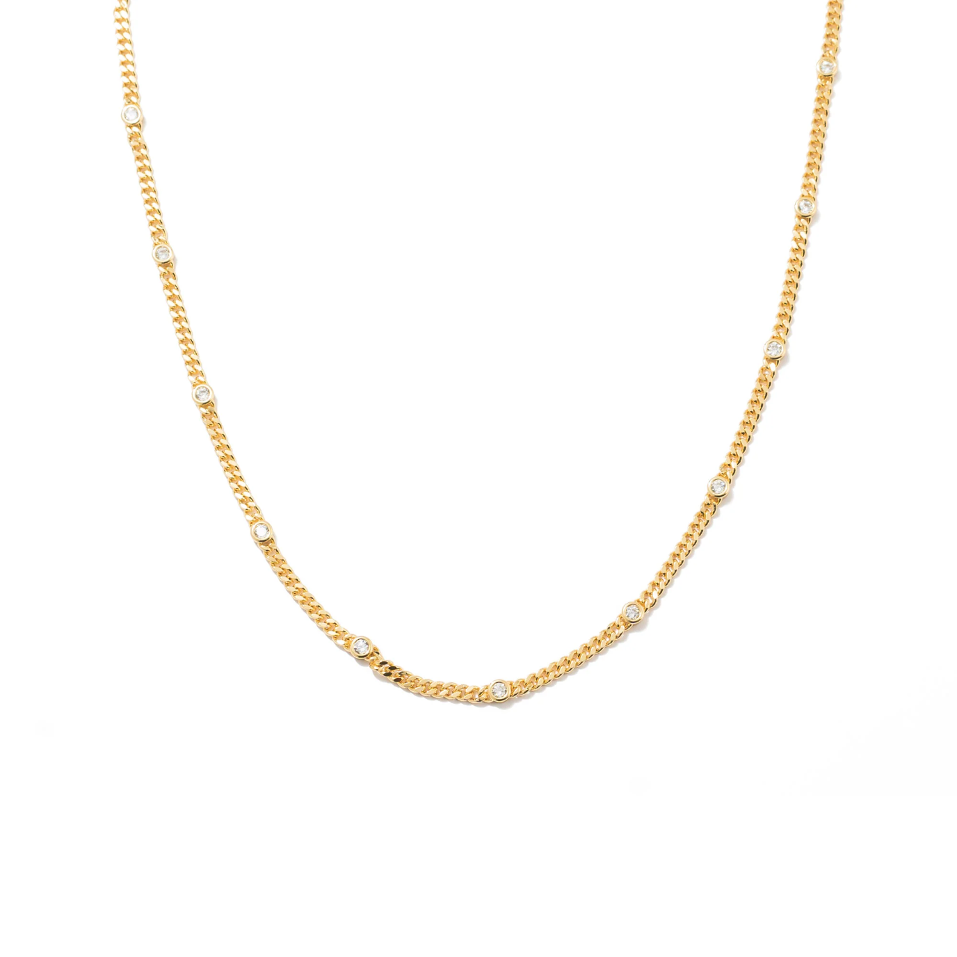 This stunning gold choker necklace is the perfect accessory for any outfit. Crafted from high-quality materials, this piece features an intricate design of dainty cz circles that glimmer in the light. The choker sits comfortably around the neck with an adjustable clasp, allowing you to create the perfect fit.